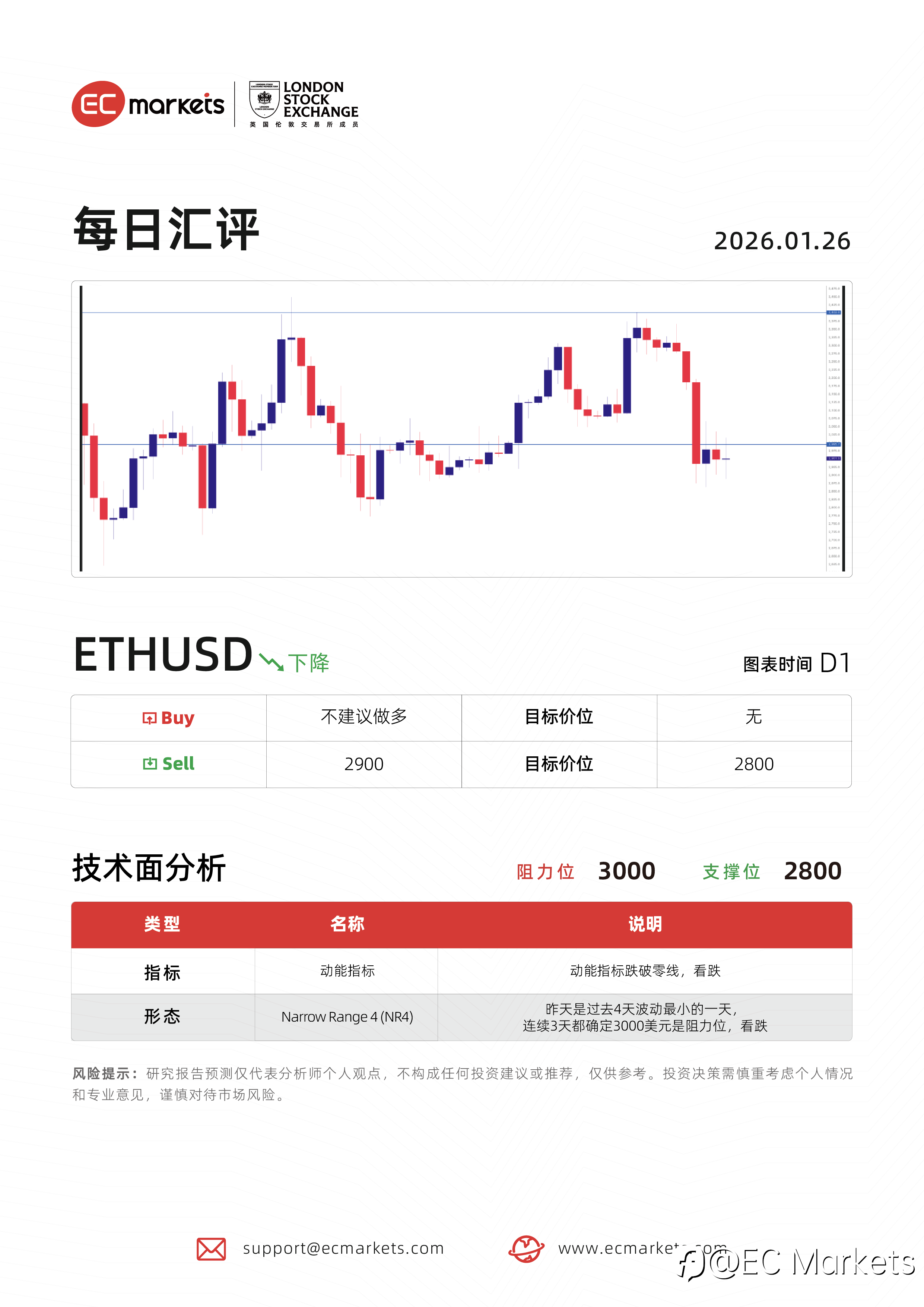 EC Markets 每日汇评 | 1月26日ETHUSD