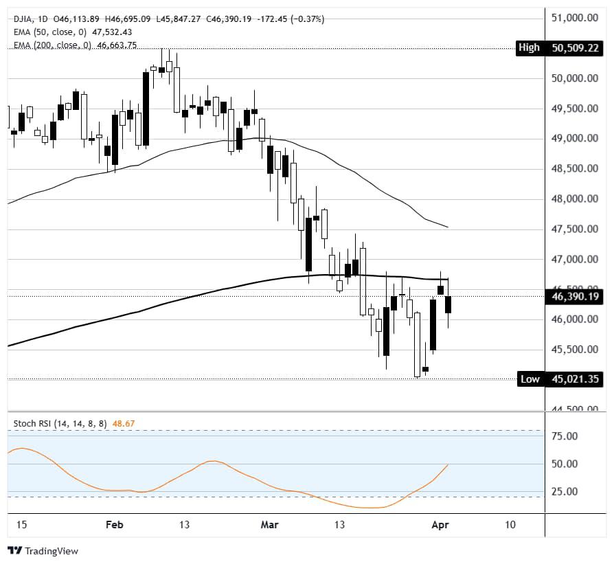Hợp đồng tương lai trên chỉ số công nghiệp trung bình Dow Jones (DJIA) giảm nhẹ nửa phần trăm vào thứ Năm, nhưng con số đó gần như không phản ánh toàn bộ câu chuyện. Ở mức thấp trong phiên, DJIA giảm hơn 600 điểm, S&P 500 giảm 1,5%, và Nasdaq Composite giảm 2,2%. Sau đó, trong khoảng một giờ, cả