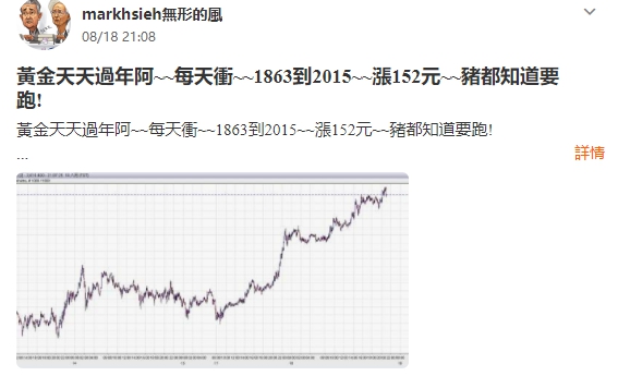 黃金天天過年阿~~每天衝~~1863到2015~~漲152元~~豬都知道要跑!