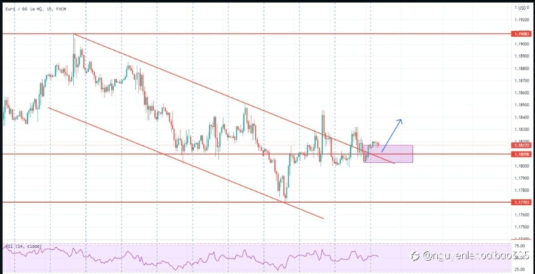 Tỷ giá EUR/USD ở phiên giao dịch hôm qua đã không còn giữ được đà giảm như tuần trước, mà thay vào đó là chỉ dao động quanh vùng 1.1800 - 1.1820. Qua đó cho thấy được quá trình breakout down trendline ngắn hạn và pullback trở lại cũng đã dần hoàn thành, và chiến lược ưu tiên cho cặp ngoại hối này sẽ