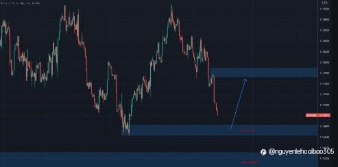 Vùng mua vào hợp lý nằm tại buy zone như trên hình. Trường hợp lực giảm vẫn còn mạnh, canh mua tiếp tại khu vực buy zone 2. Mục tiêu là vùng tiếp theo như hình