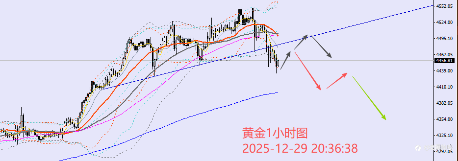 12.29晚盘外汇、黄金、原油分析策略: 【美指】 美指日内延续震荡,上测98.1,下测97.9,当前行情回到5日线之上,整体呈现偏强态势,晚间或可能去测试10日线98.2附近。不过考虑到年底最后几个交易日,市场交投情绪可能会继续寡淡,所以晚间美指可以持看偏强预期,但也不要过于期待,即便站上10日线98.2上方,后期测试20日线也可能会有一个较为漫长的时间过程。 【黄金】 黄金今日高开低走,亚盘时段先回撤4473一线,后虽有回弹,但上方小时图级别压力4520一线如期再承压回落,目前低点跌至4435一线附近,如此下跌力度说明芝商所增加保证金的举措已经有效扼制住近期的极端上涨,技术上积压的调整需求