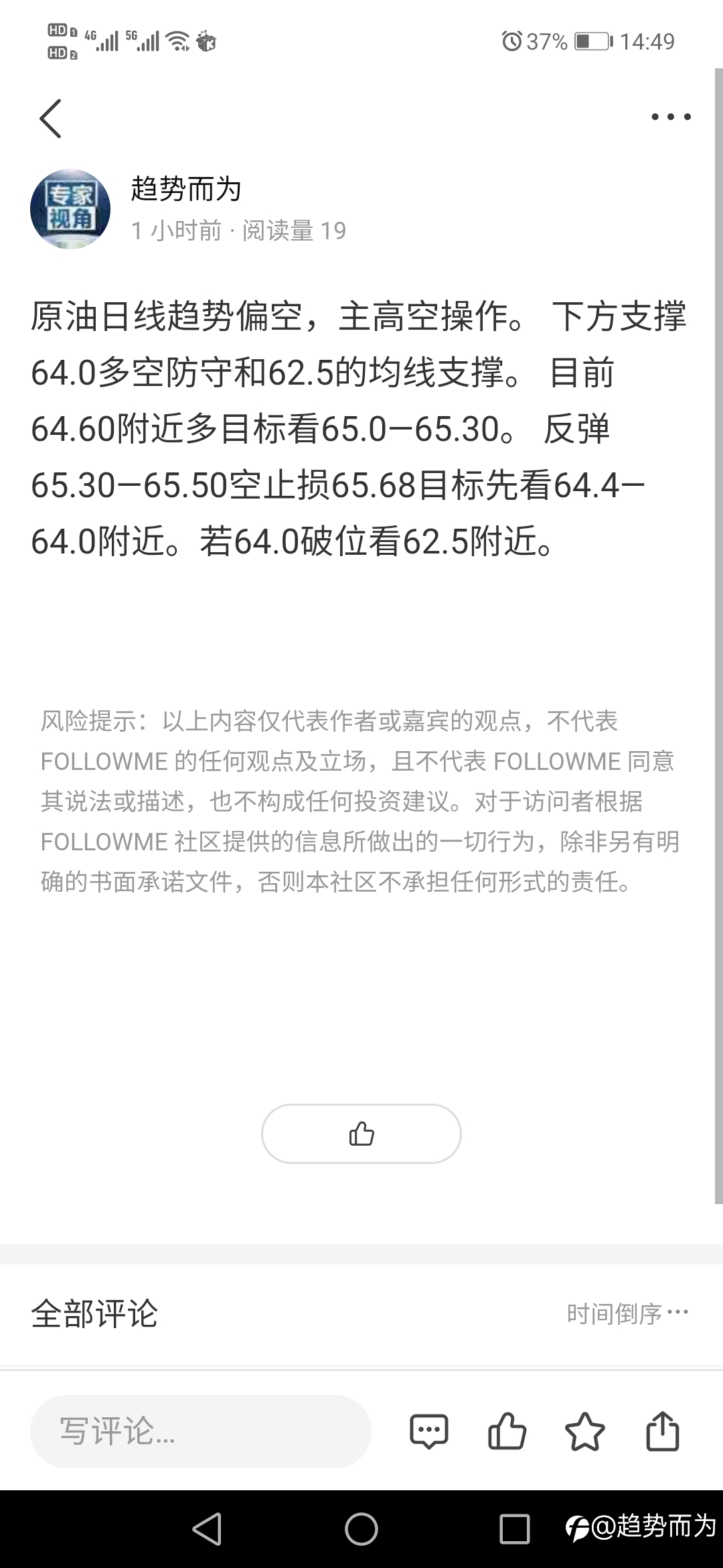 原油64.60附近多已经小获利一波