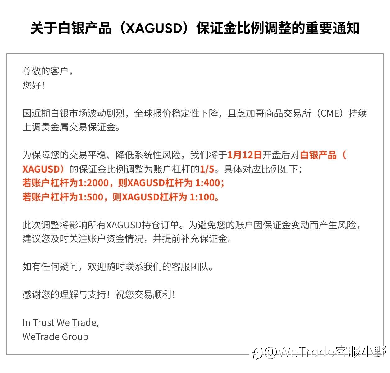 关于白银产品(XAGUSD)保证金比例调整的重要通知