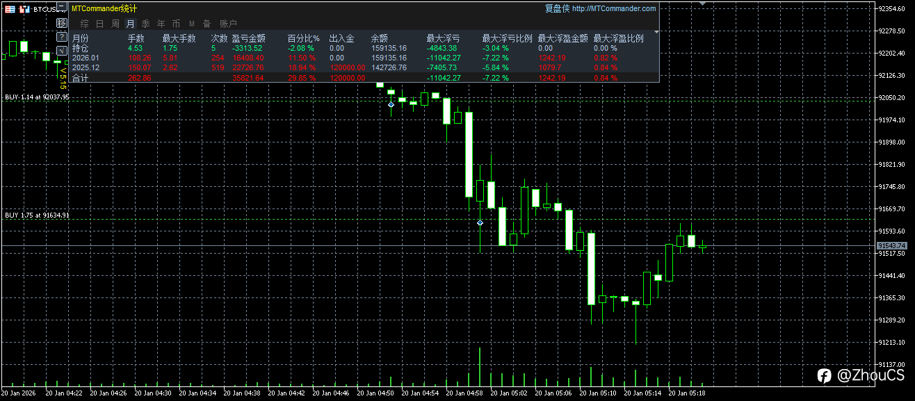 昨晚由于新品大单量量化剥头皮对冲等综合策略黄金EA实盘测试中,出现模拟盘信号账户限制交易量造成开单失败,及时硬损一次,经过连夜调试后,今早继续开跑中,理想状态是可以很快扳回昨日损失的。