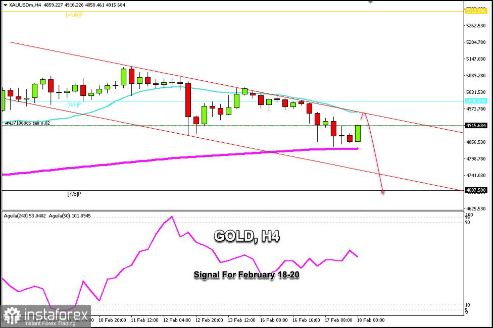 Sinyal Trading untuk EMAS (XAU/USD) pada 18–20 Februari 2026: jual di bawah $4.960 (21 SMA - 8/8 Murray)
