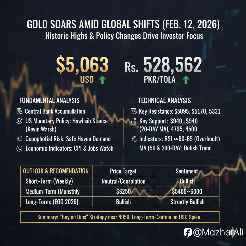 As of February 12, 2026, Gold remains at the center of global investor attention, trading near historic highs amid shifting economic policies and geopolitical tensions. Below is a comprehensive technical and fundamental breakdown of the current outlook. 🌍 1. Fundamental Analysis Gold’s bullish stru