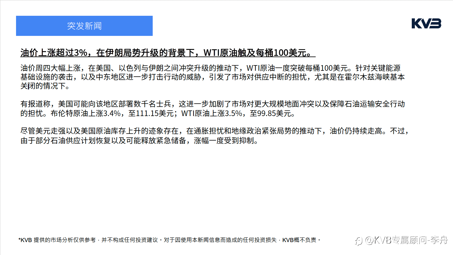 KVB专属顾问-李舟 :