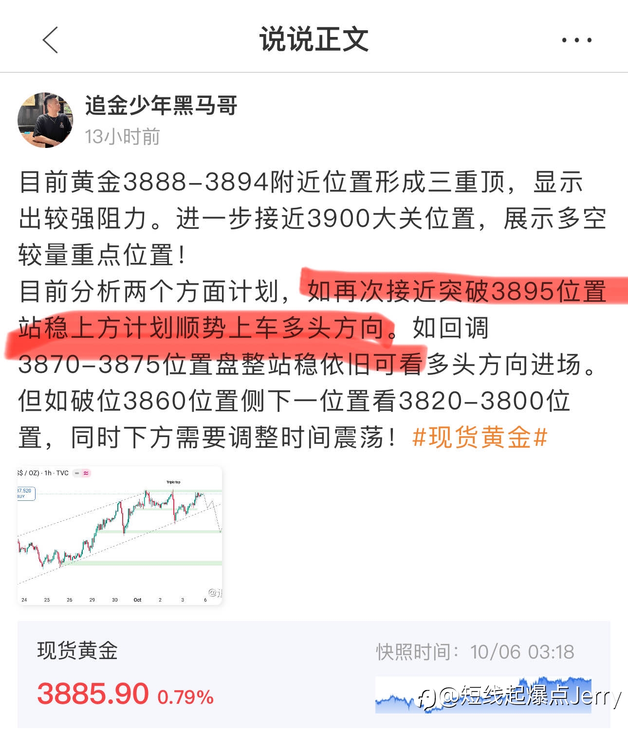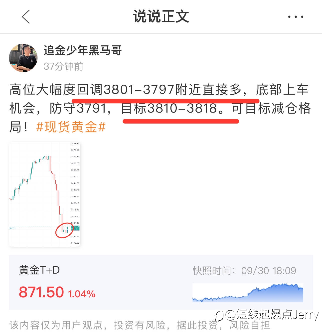 短线起爆点Jerry Theo dõi 11 Đang theo dõi 356 Người theo dõi 2,806 Độ phổ biến ··· 471 Lượt xem 25 Oct 2023 Tham gia China 专注黄金市场的交易,程序配合。分享个人超短,短线,波段操作思路,一起单车变摩托,欢迎大家一起交流。