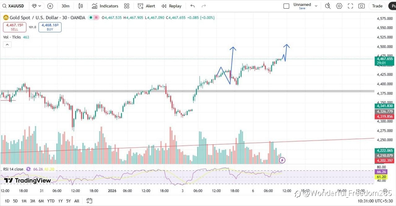 *XAUUSD Analysis | 30M Timeframe* *CMP:* 4467 *Support:* 4450 / 4430 *Resistance:* 4475 / 4490 *Outlook:* Gold maintains a strong bullish bias, supported by ongoing geopolitical tensions involving t...