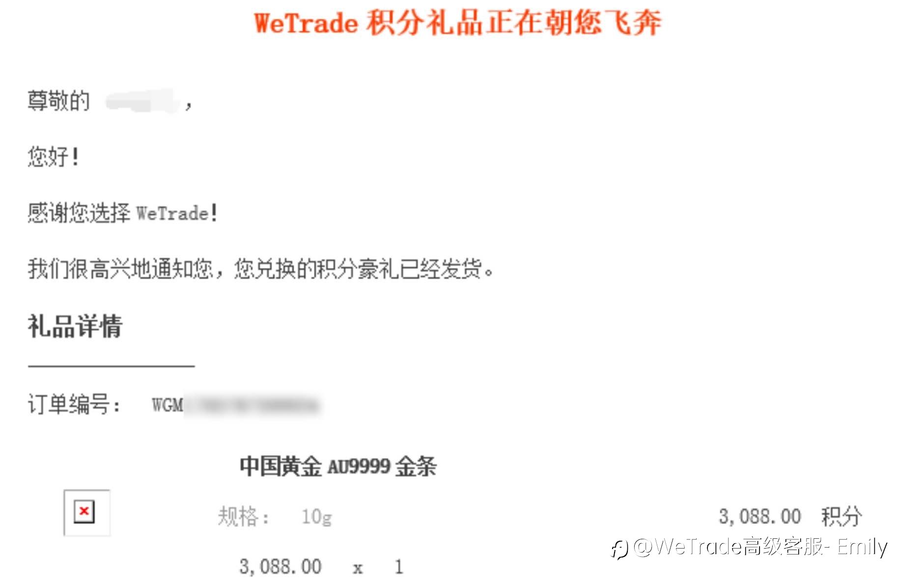 恭喜这位忠实用户喜提价值1万多元的10g金条🎊WeTrade积分商城让您的每一笔交易都更有价值❤️🔥