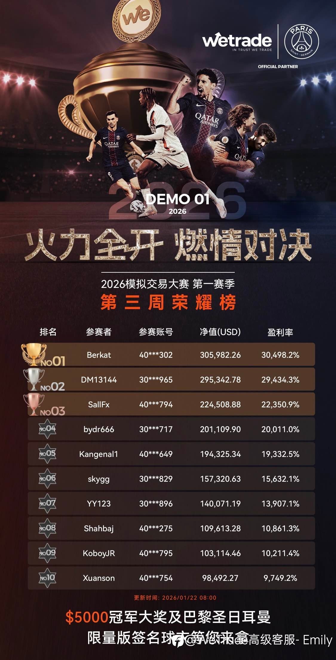 ⚽📈 最坏的结果,也不过是没赢而已 但不尝试,永远不知道自己能走多远 WeTrade 2026 模拟交易大赛 · 第一赛季 🔥 仅剩最后 10 天! 💰 $5,000 现金大奖 👕 PSG 限量版球衣 🏆 与全球交易者同场竞技...