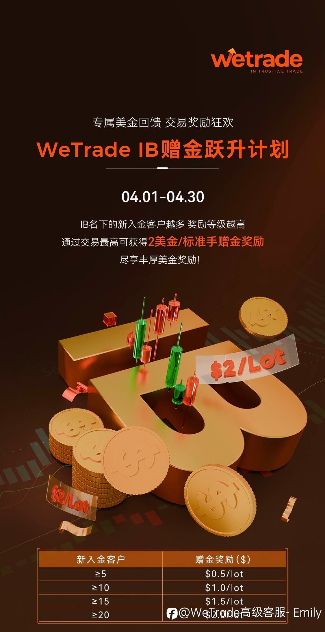 每一笔交易,都值得被认真对待 这个四月,在 WeTrade APP 交易 即可享受 1美元/标准手返现赠金 💰 立即打开 WeTrade App 领取专属奖励