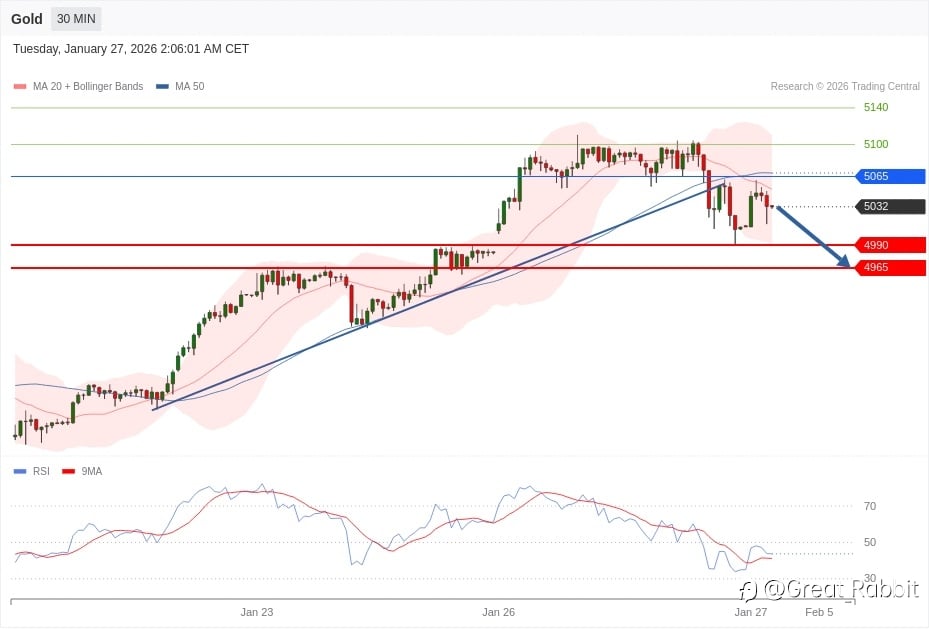 2026年1月27日 黄金行情分析:5100 遇阻引发获利回吐,短线回看 4990 支撑