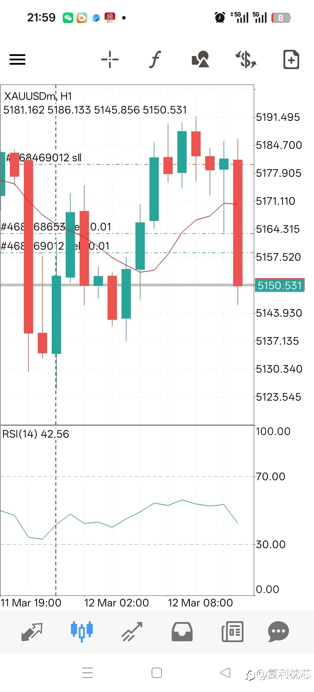 黄金高位震荡后下行,如果今天顺利收日阴线,本周将迎来黄金空袭行情。本周周线收阴,短期行情看空 。信号账户还没通过,先用其他账户搞一小波
