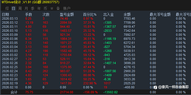 这现象确实很有意思,我自己也观察过类似情况呢。小资金用0.01手时,反而容易放得开——亏了影响不大,赚了也能快速积累信心,心态松弛了,对信号的判断反而更敏锐。可资金一大,就像肩上多了副担子,既怕回撤伤本金,又想快点看到大收益,