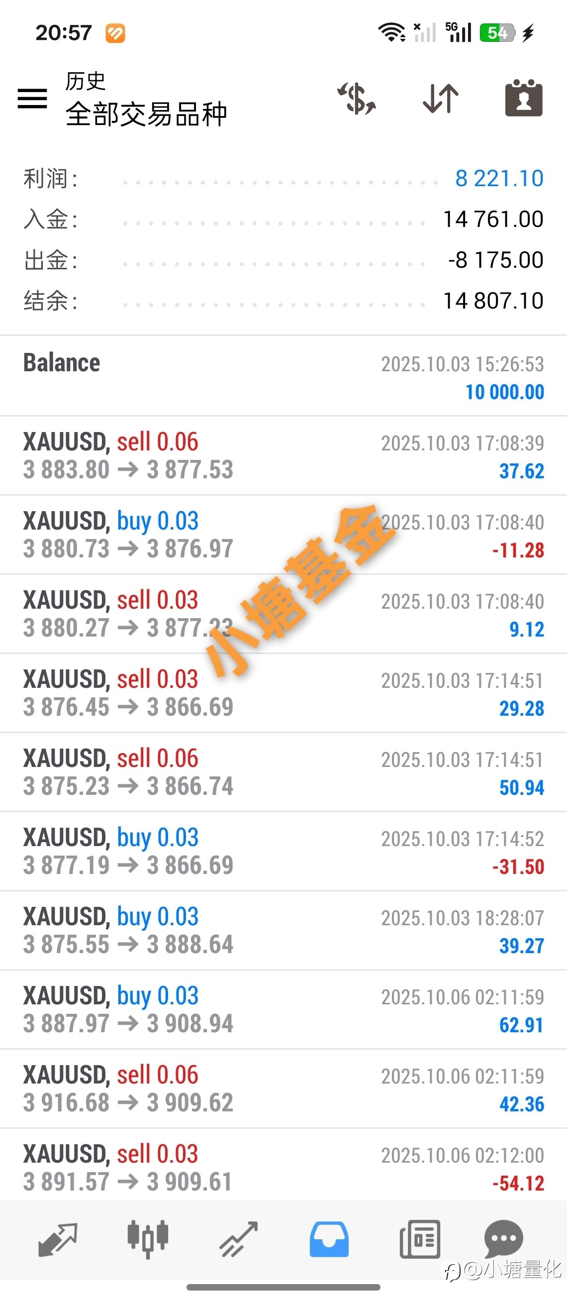 小塘量化 Theo dõi 12 Đang theo dõi 181 Người theo dõi 516 Độ phổ biến ··· 250 Lượt xem 27 Dec 2024 Tham gia China 账户社区 ECN类型,搜:小塘基金,也可跟随,趋势策略、风险可控,不限资金大小 一起见证账户的净值增长,早跟随早受益